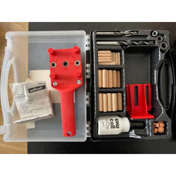 It's suitable for 6, 8 and 10 mm dowels. The set is delivered in a plastic case for easy transport and storage.
