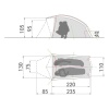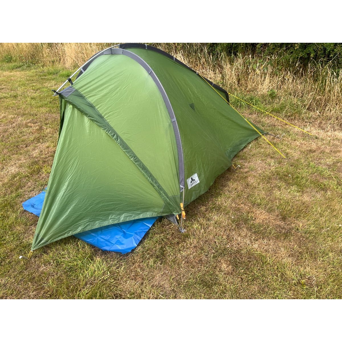 Taurus Ultralight tent. Suitable for 1-2 person. Has zipped area in front of the sleeping compartment for storage.