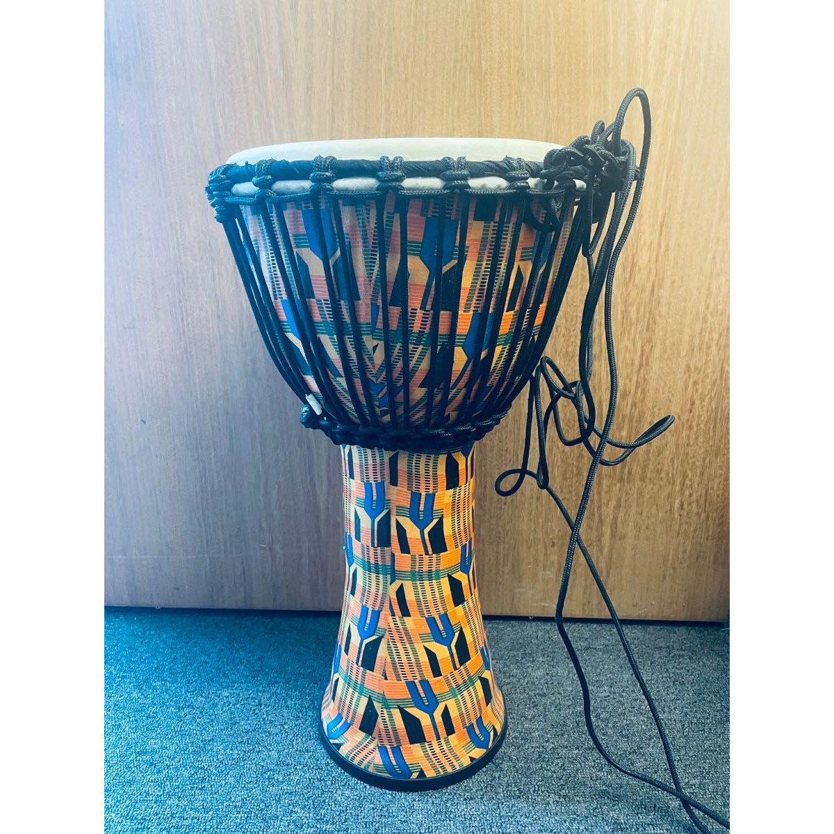 7" diameter, rope tuned. Plastic shell with hand-selected goat skin drum head. Perfect for percussion groups, school and nursery.