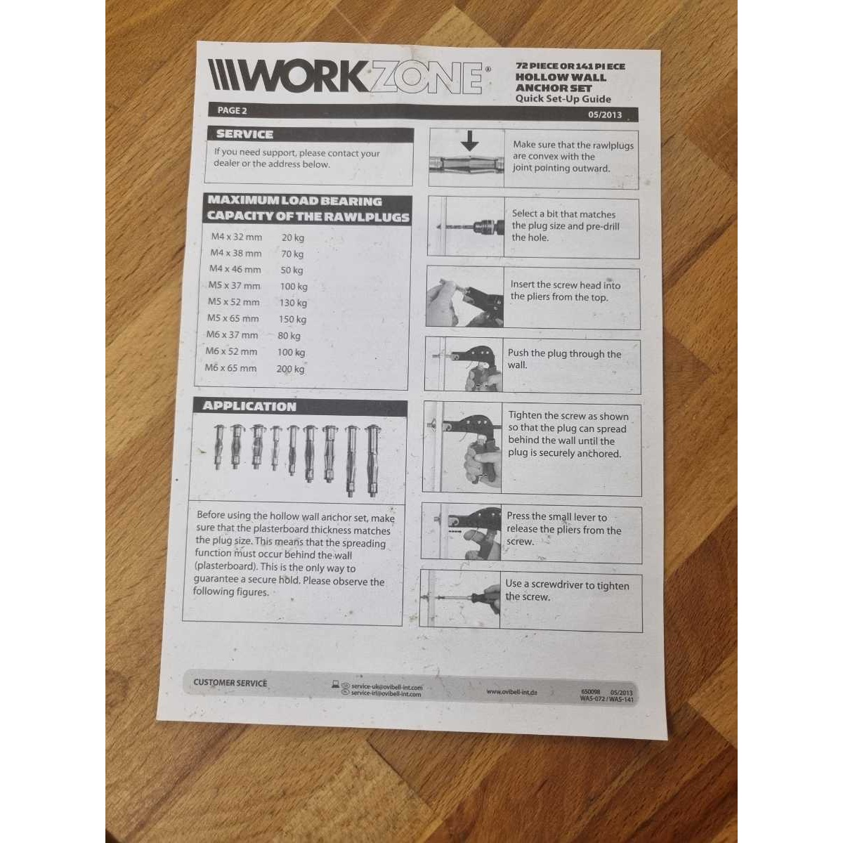 Anchor tool with anchors, manual found under plastic tray. Does not include drill.