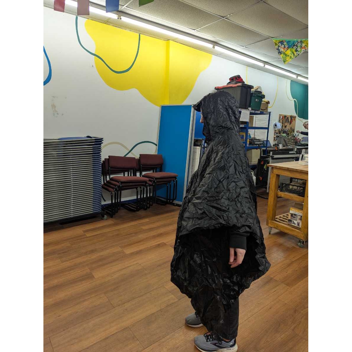 Adult black poncho in a carry bag.