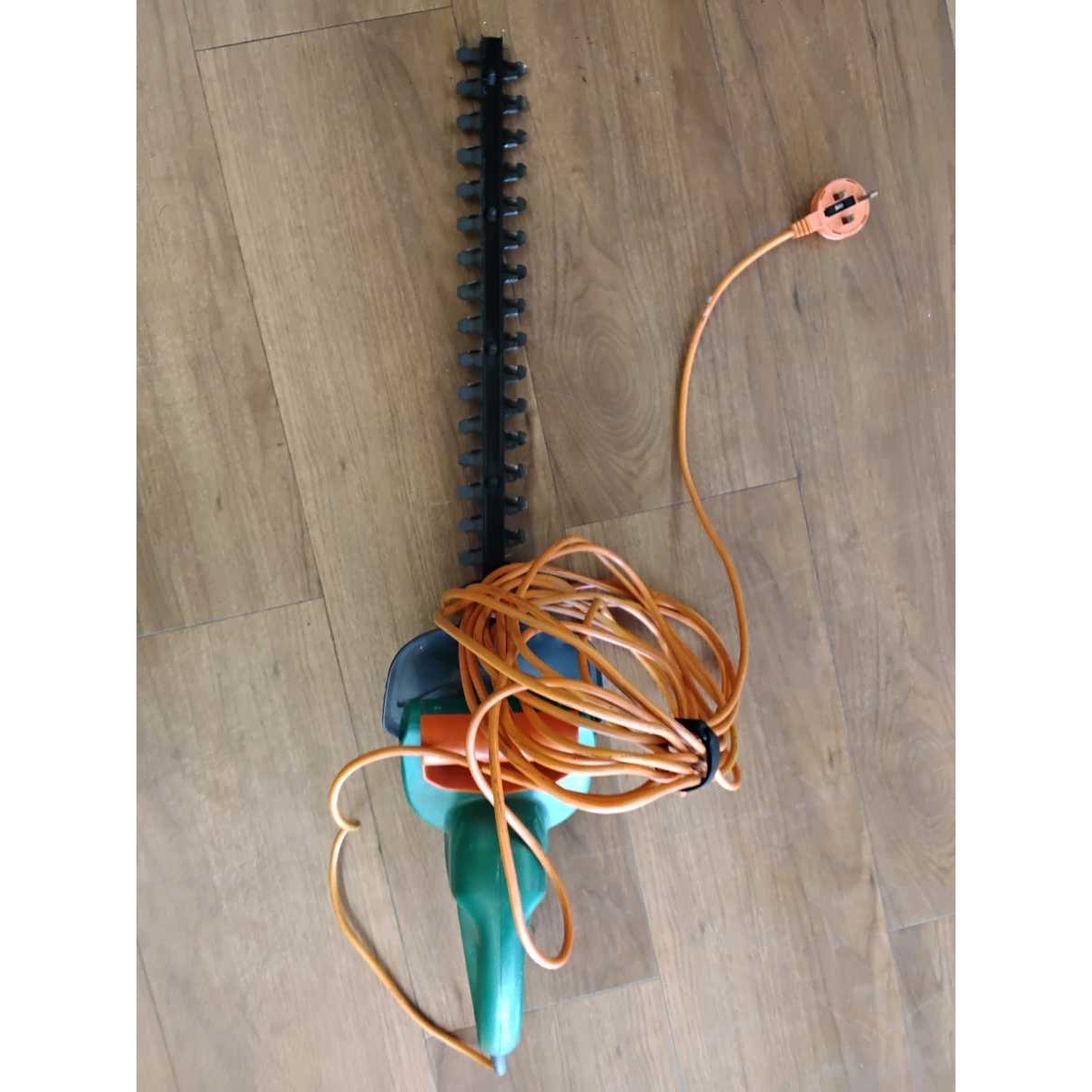 Corded electric hedge trimmer.