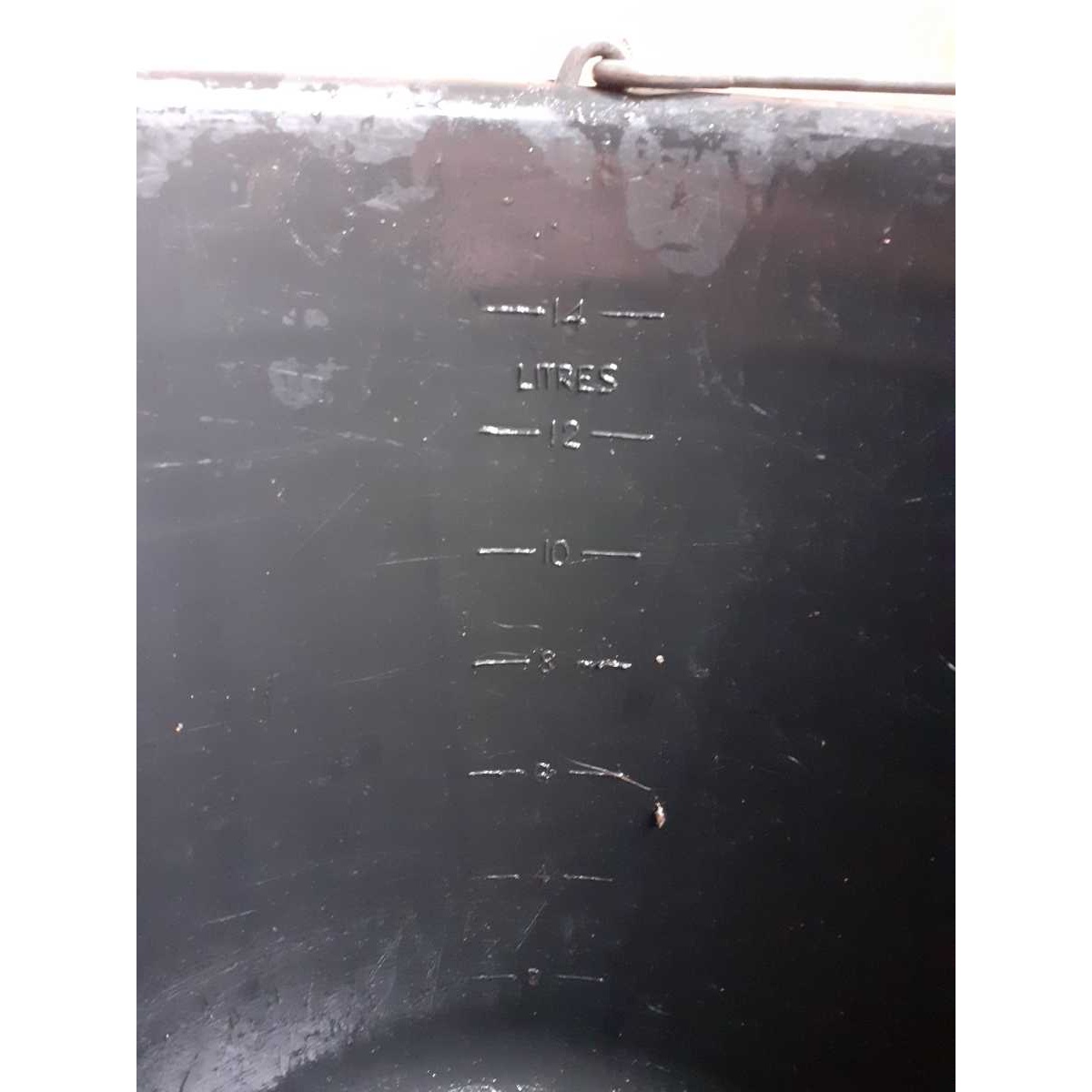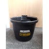 A 14l bucket made of durable plastic with a metal handle, and suitable for gardening, cleaning and mixing materials.
