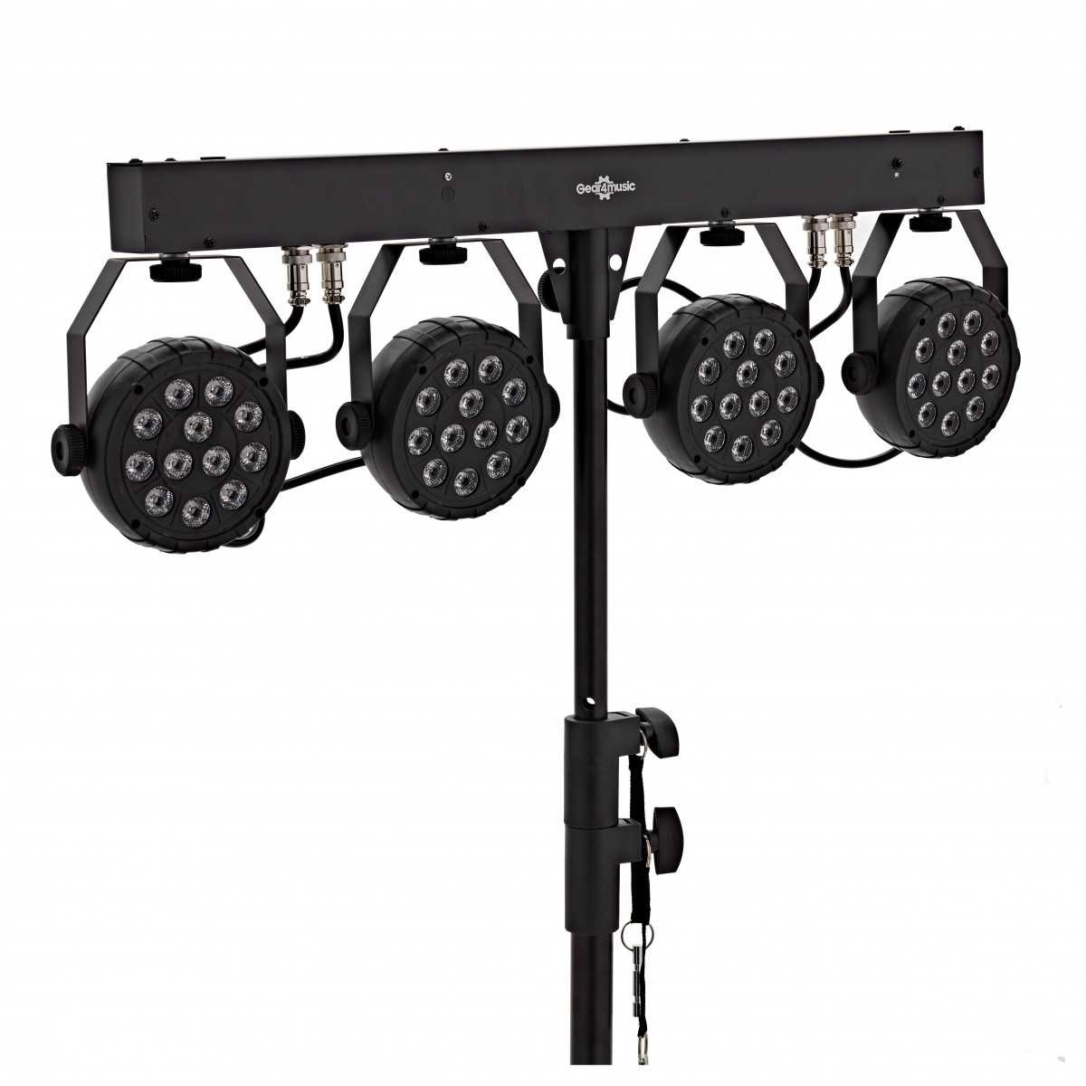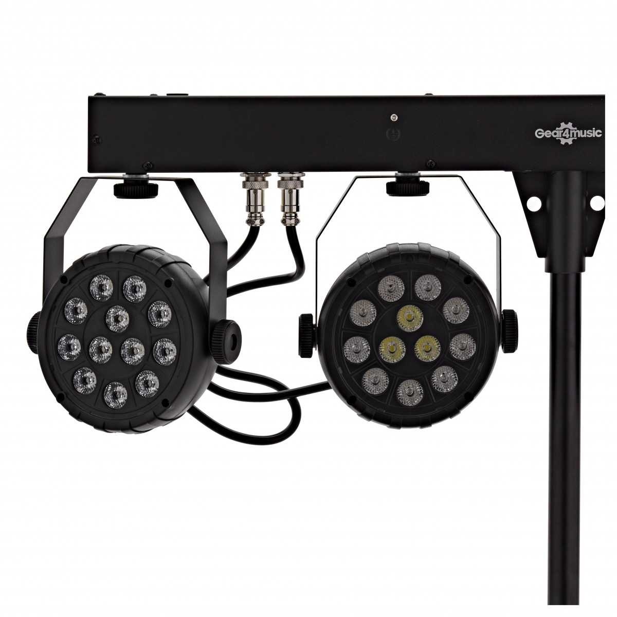 Professional lighting made accessible. The party par can light set by Gear4music is a high-powered lighting bundle. This set includes 4 bright LED RGBW Par Cans, carry bag and compact T-bar stand. You get versatile and interesting light shows with a huge choice of colours.