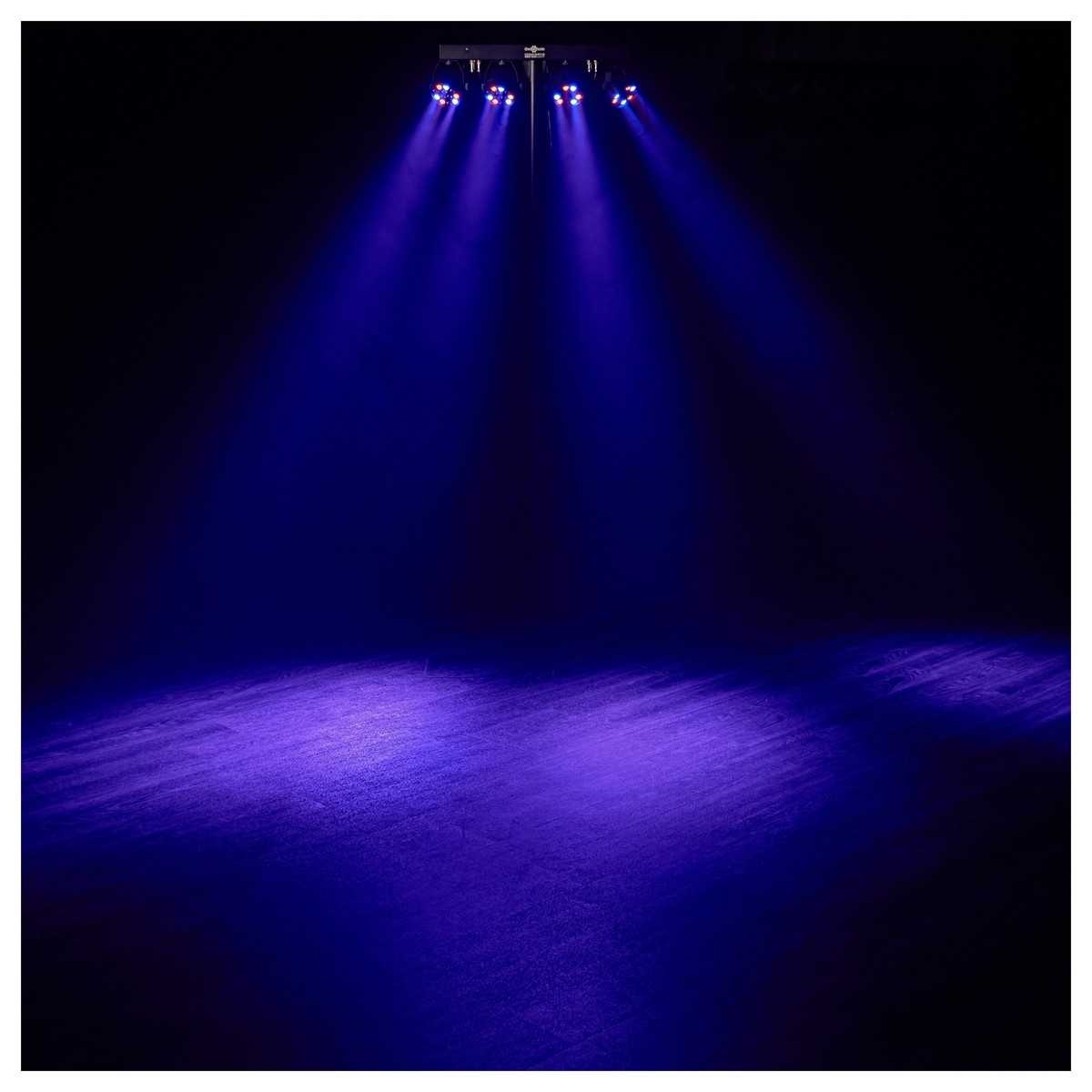 Get the party started with an easy to use all-in-one lighting system! This set is ideal for both the stage and the dance floor. With a choice of DMX modes, pre-programmed auto modes and sound mode, the Cosmos par bar system can fire out well-timed lighting shows at the touch of a button. Light up your parties and events, with completely fuss-free operation.