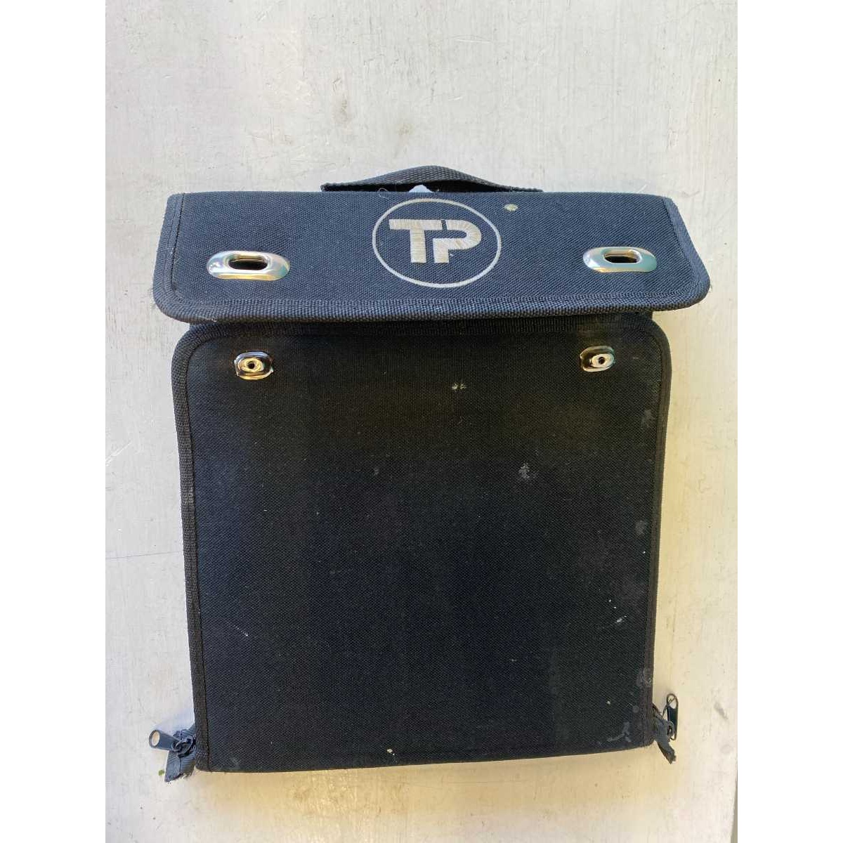 Zip-up pouch holding 4 Travis Perkins brand chisels and one other.